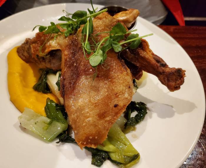 The portion was huge and appeared to be fried properly without all the grease known to come with duck. He raved about it so much that I almost considered taking a bite.