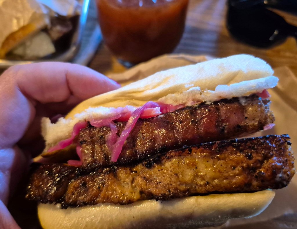 We savoured everything we ordered, from the kimchi Bloody Mary and Old Fashioned with charred oranges, a rosemary fizz cocktail, to the Thai buffalo chicken sandwich, chicken & pear Banh mi, Korean pulled pork, brunch burger, chicken & waffles, and a breakfast wrap with loads of cheesy lemon crema and Benton’s bacon.