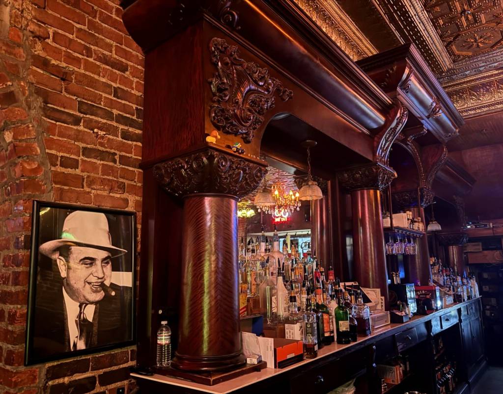 The mural on the wall inside Capone’s is actually the exterior of the building next door. During remodeling, they sort of absorbed the wall while expanding the width of their own building.