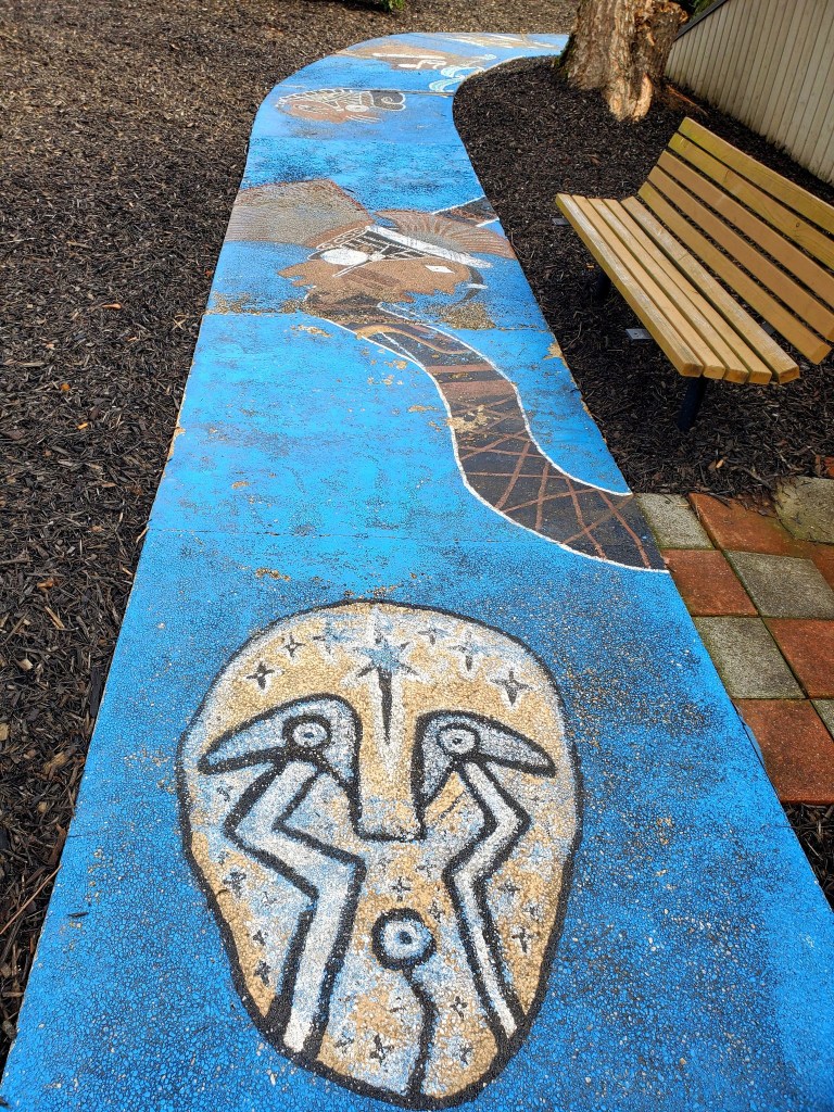 Walk the tiny art trail in front of the museum and admire this painted path.