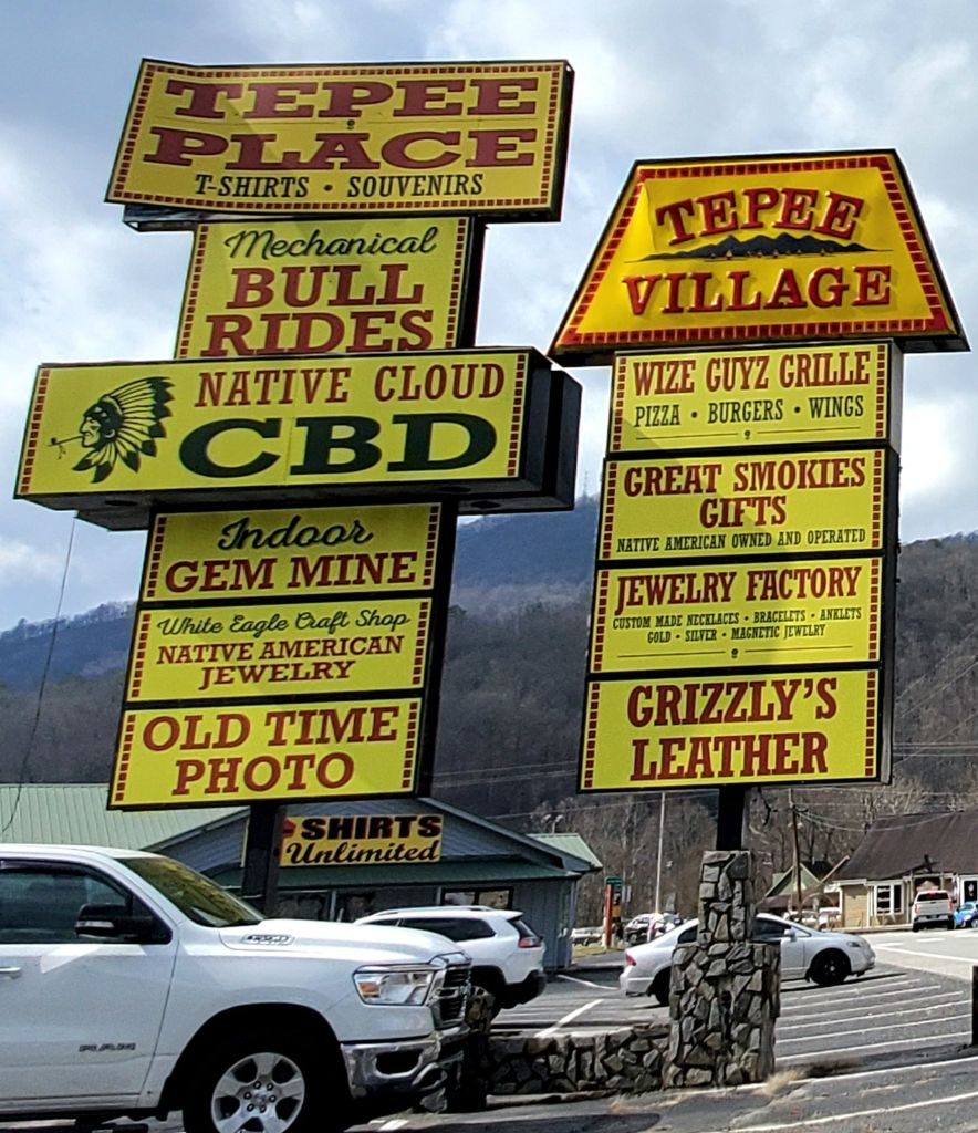 Saunooke Village is one of Cherokee’s main centers for shopping, souvenirs, and tourist attractions, complete with bull riding, golf, laser tag, river rafting, and restaurants.