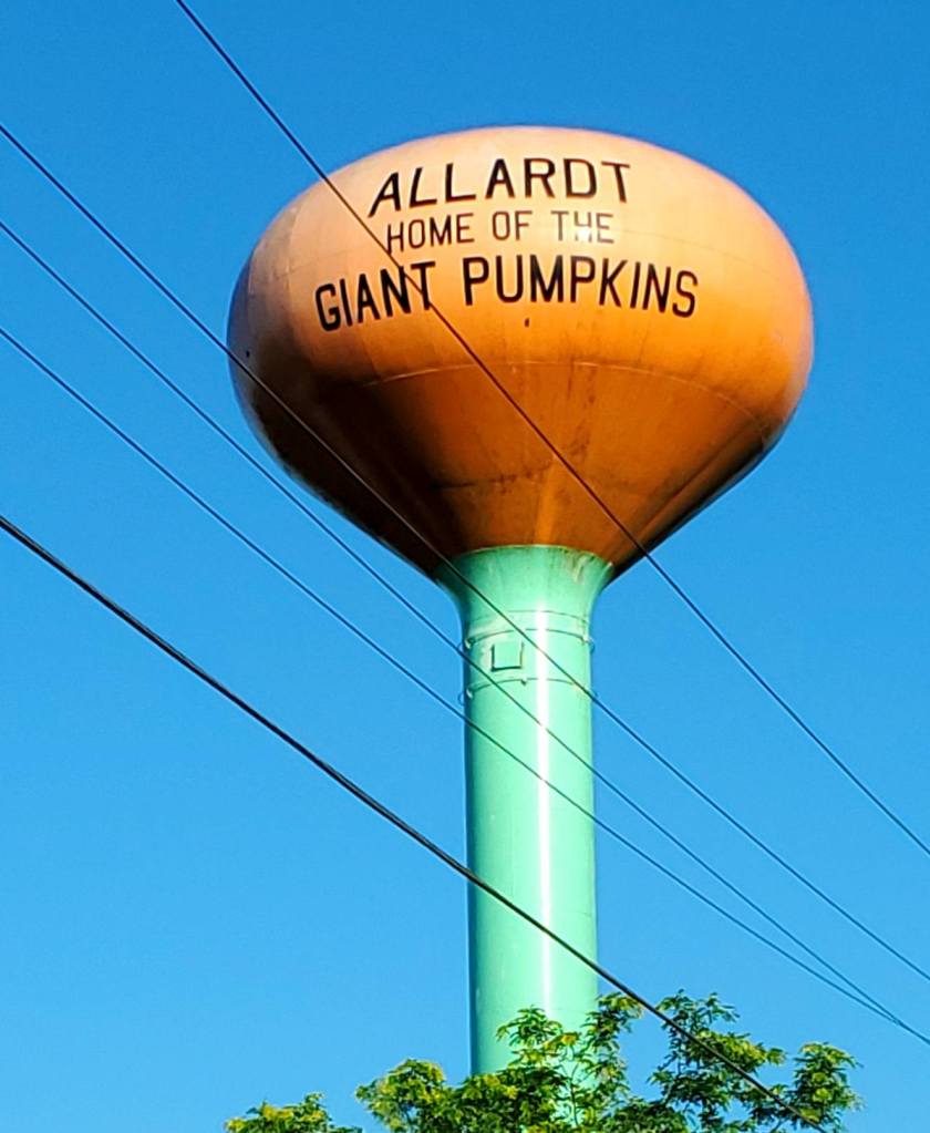 Allardt has several unique water towers, one of which is painted like a pumpkin to celebrate the town’s annual Great Pumpkin Festival. Colditz Cove State Natural Area and Northrup Falls are both close by.