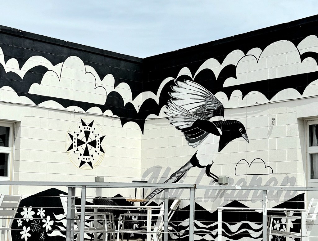 This enormous mural wraps the entire backside of Aby’s Bar & Venue!