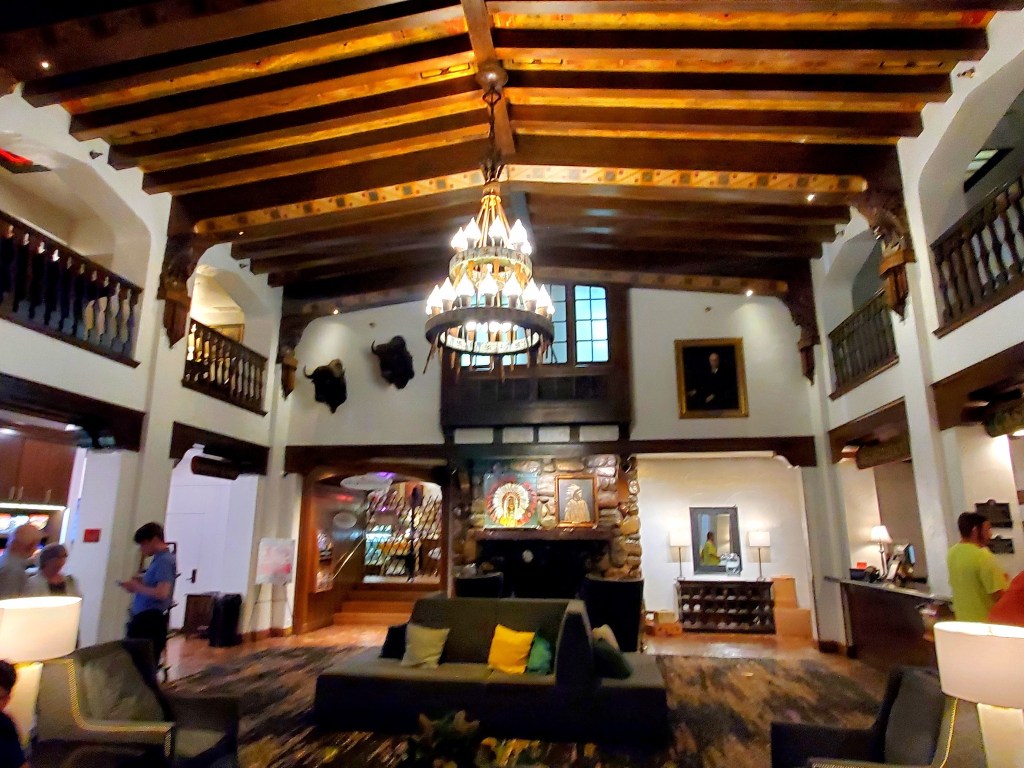 There has been much controversy about what looks like swastikas carved into the lobby ceiling, but the hotel’s website states that they are Native American symbols. You can decide for yourself.