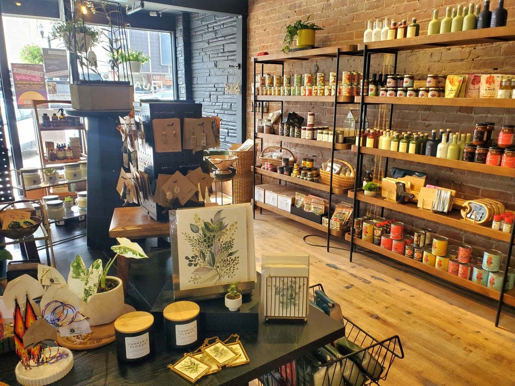 The store is brimming with paintings, carvings, sculptures, leather goods, home decor, dry goods, herbs, books, clothing, blankets, craft supplies, and more from Indigenous makers.