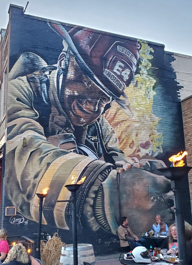Firehouse Brewery & Restaurant was the most impressive due to its history as a fire station, murals on its exterior, and actual fires lit up all over its courtyard.