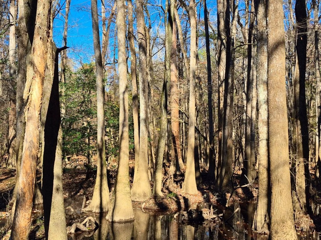 Congaree also has one of the largest concentrations of “Champion Trees” around the globe, which means some of the tallest of fifteen different tree species are available to be gazed up at or hugged if you are so inclined.
