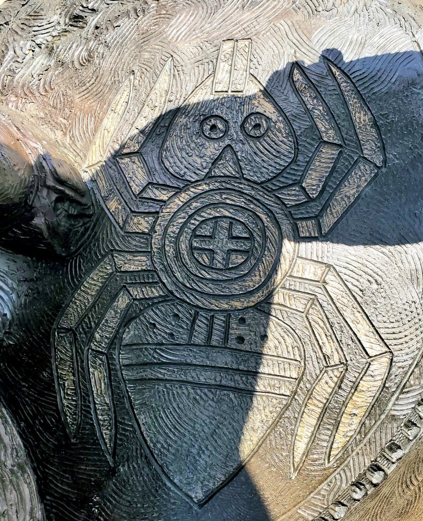 The monument above and below is called “Sowing the Seeds of the Future” and it is a Folk Heritage Association of Macon County multi-artist project that was donated to the city of Franklin in 2024.