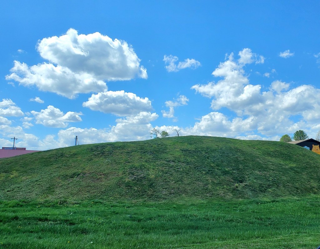 You can see the mound if you stand in front of the “Sowing the Seeds of the Future” monument and look left.